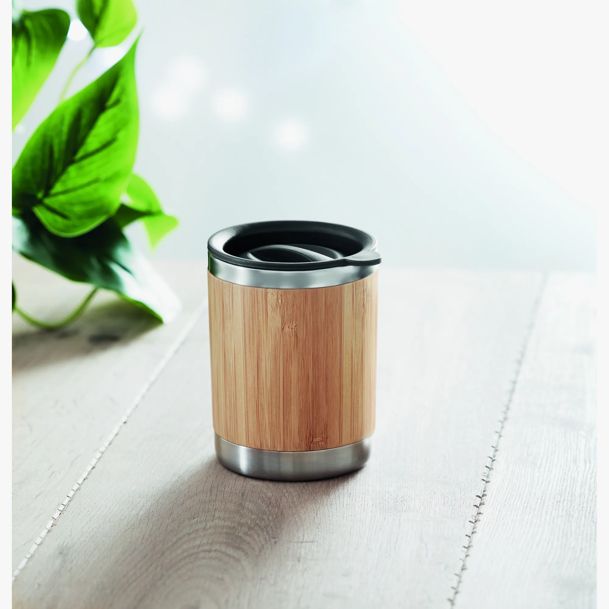 The double-wall stainless steel tumbler with bamboo wrap is perfect for offices, receptions and corporate gifts. Personalise this thermal tumbler with your company logo and create an elegant support for your brand.
