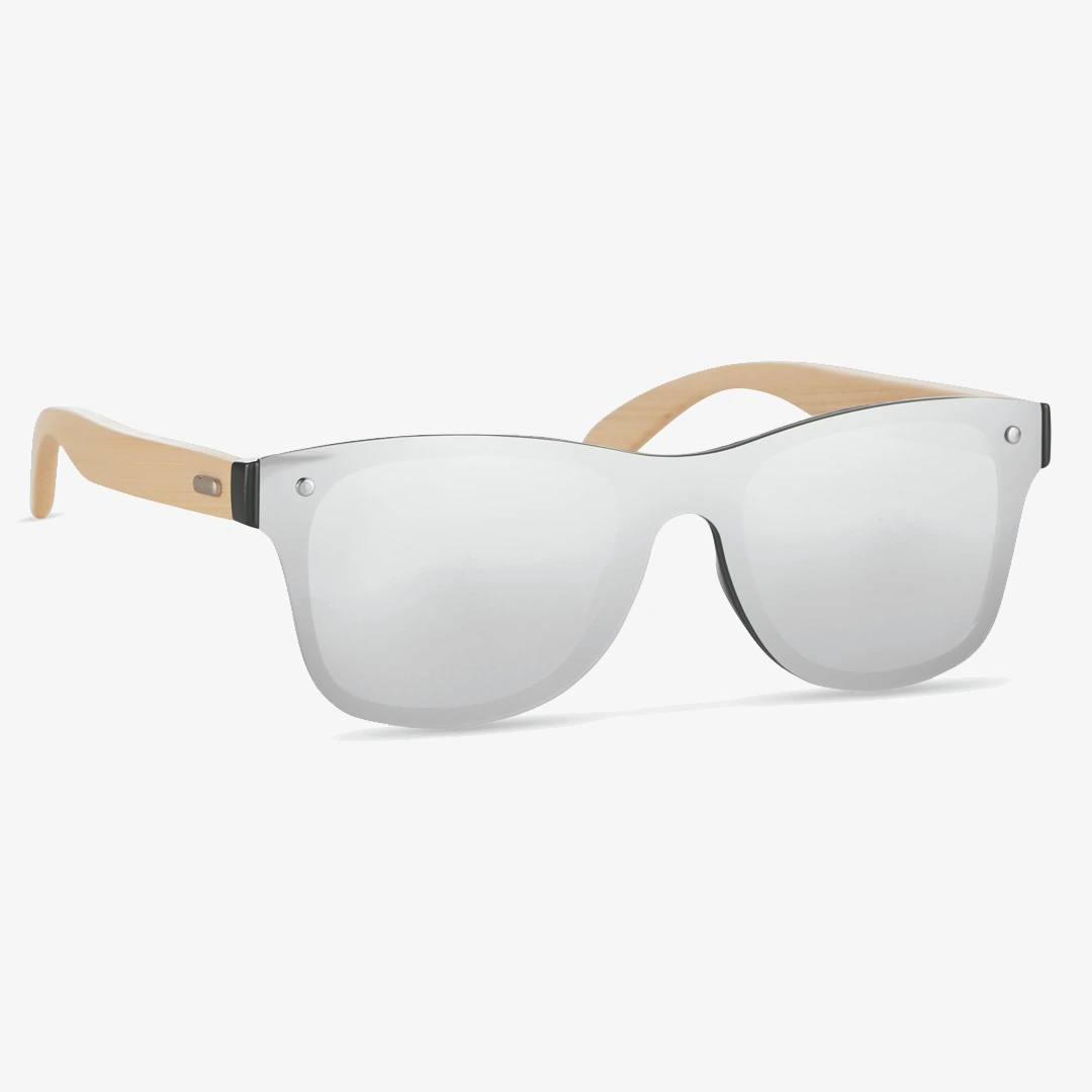 The personalised sunglasses with bamboo arms feature fully mirrored lenses and UV400 protection to shield the eyes from the sun. The bamboo arms provide a unique natural finish, with slight colour variations between units, creating a highly attractive, on trend promotional item.