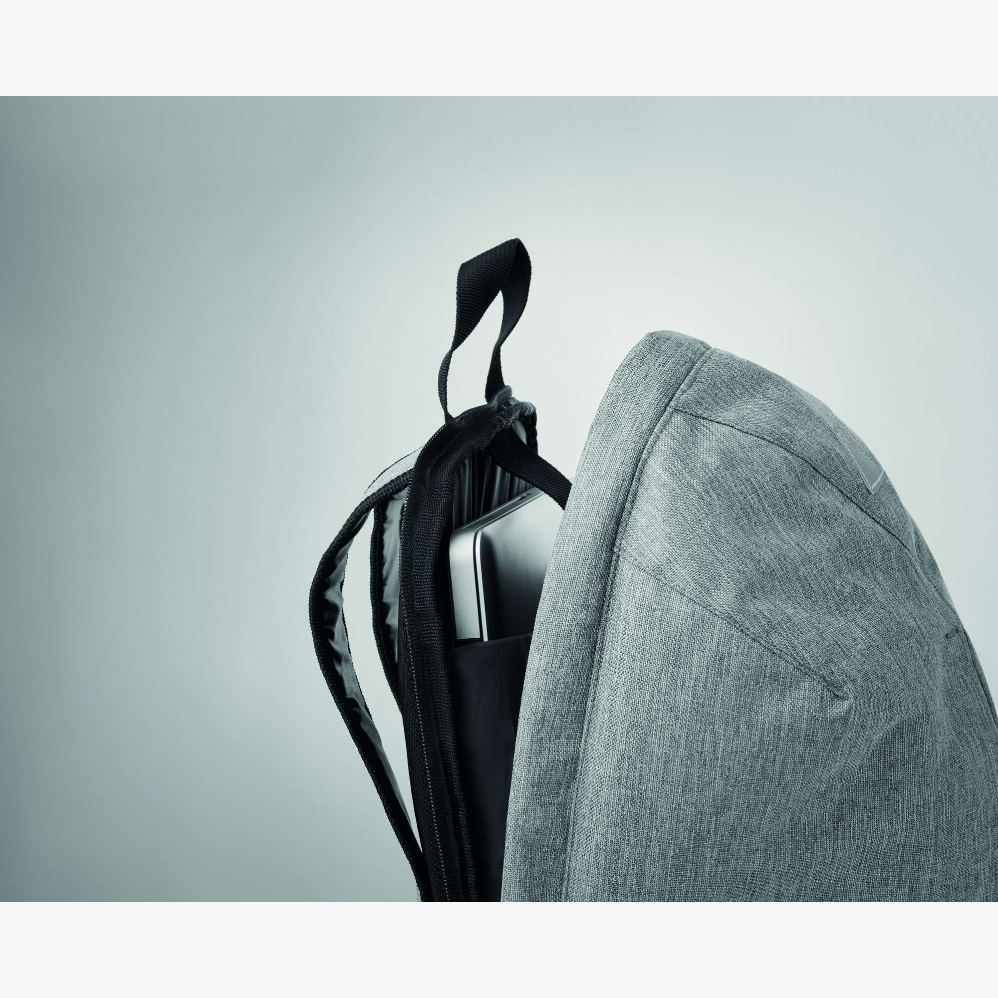 This bicolour backpack in 600D polyester includes a main compartment with rear zip closure. This system helps protect the laptop against unwanted opening.
