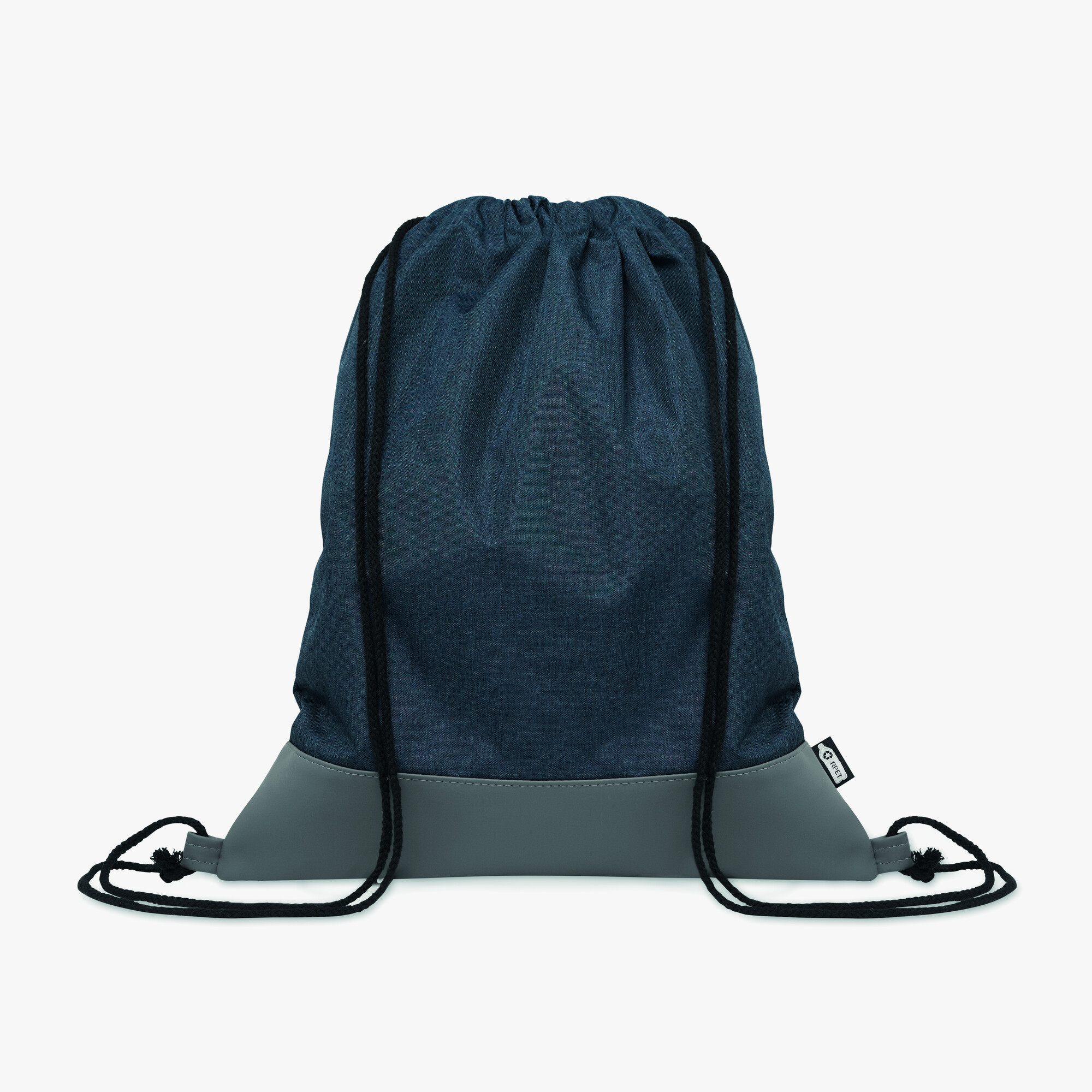 This 300D RPET polyester drawstring bag includes decorative soft PU details. The bicolour closing cords are made from a durable polycotton blend.