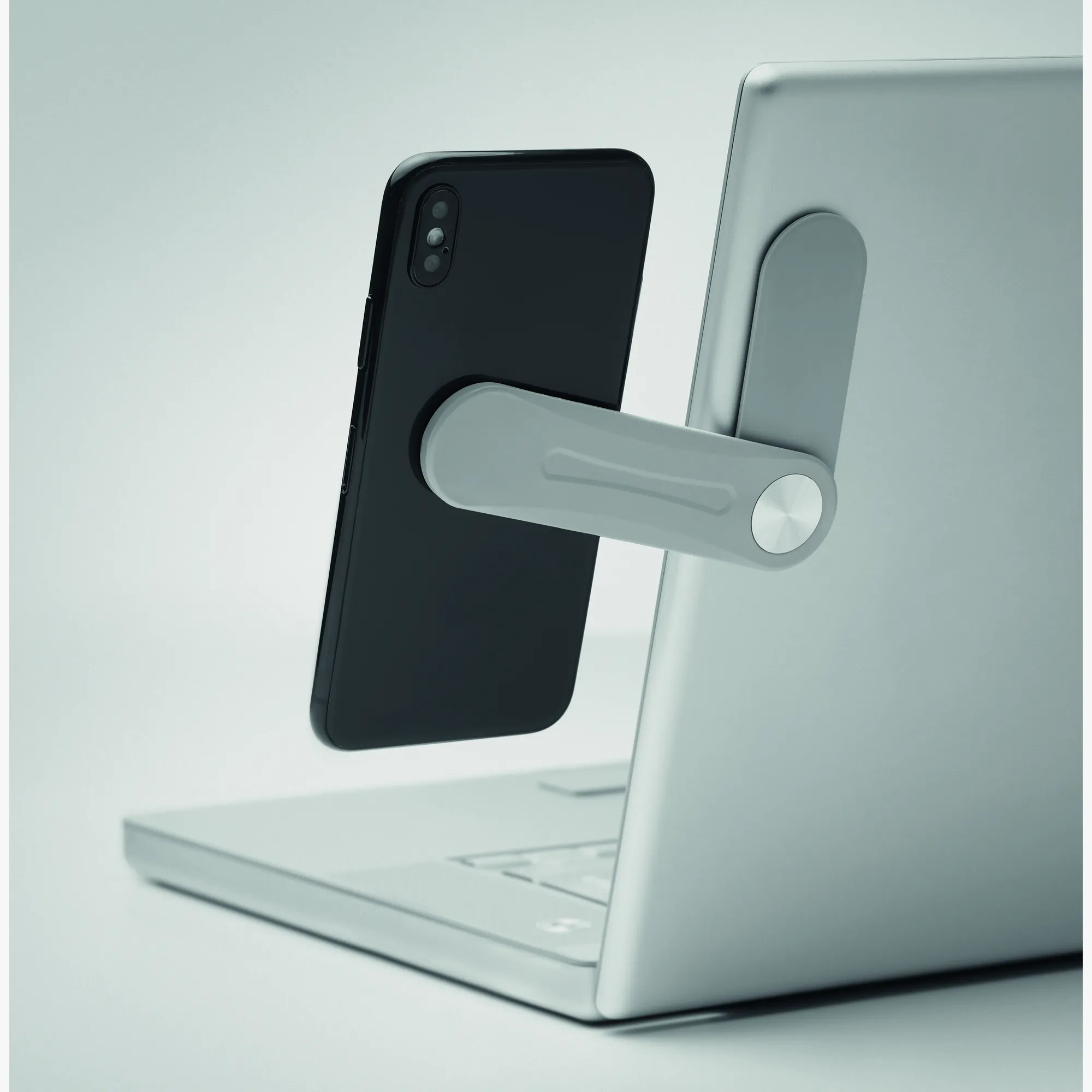 The magnetic mount expands the workspace by attaching the phone to the laptop. Personalise it with your logo for a modern productivity promotional activity.