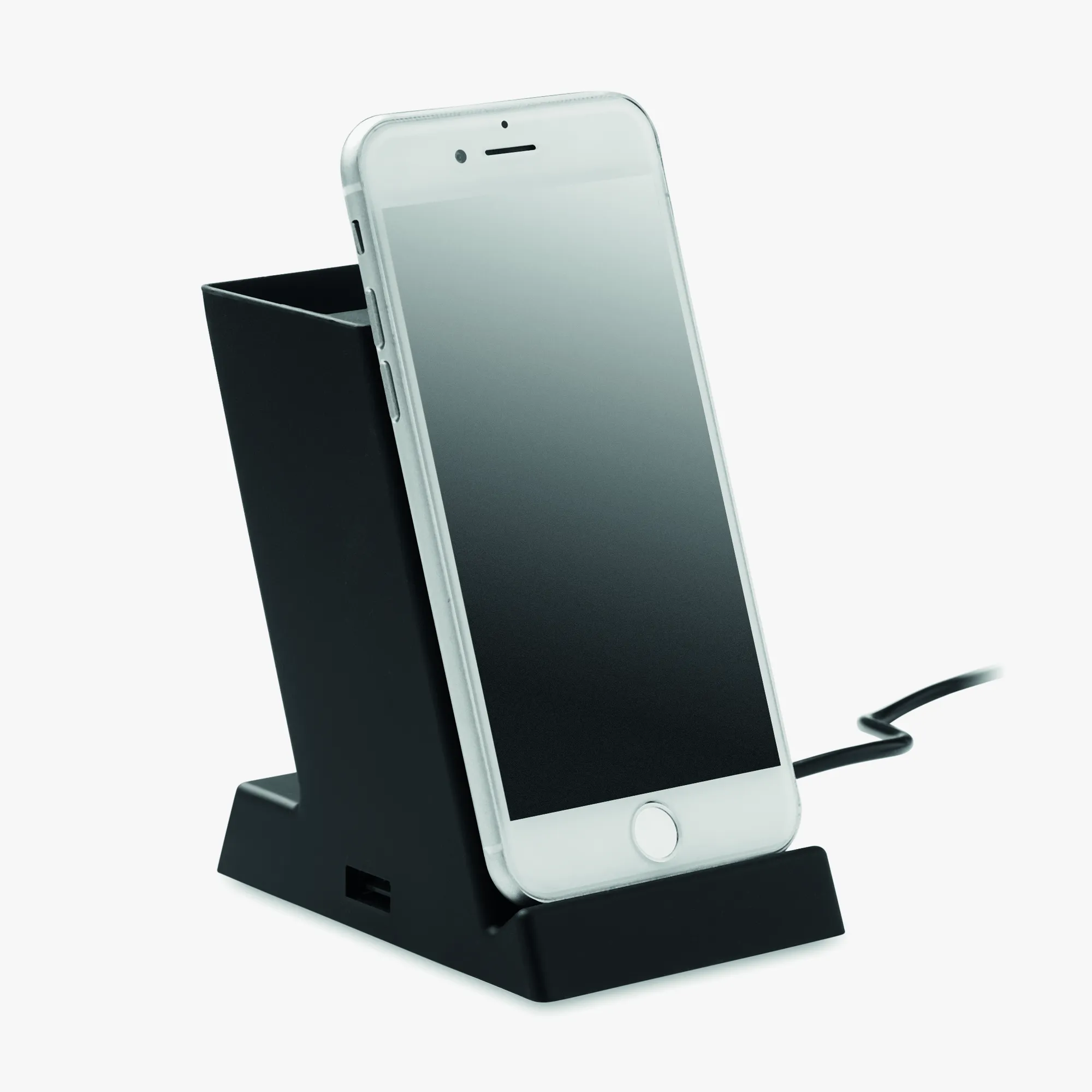 The wireless charger with pen holder optimises desk space, energy management. Personalise it with your logo for practical, tidy office merchandising.
